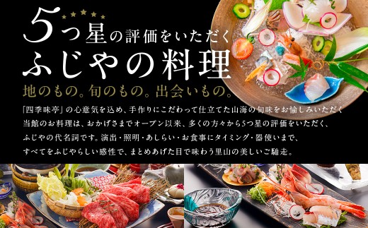 ・寄附お申込み後、四季味亭ふじやよりペア宿泊券とパンフレットをご送付いたします。