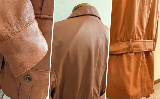従来のサファリジャケットのディテールを損なわないようにレザーで再現致しました。