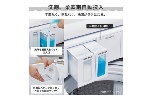 ★【洗剤自動投入】洗濯物の量に応じて、最適な量の液体洗剤・柔軟剤を自動投入。毎回計量する手間がありません。洗剤の入れすぎがなく、経済的です。