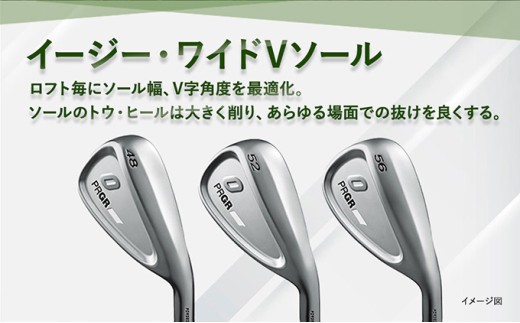 新 0 WEDGE のイージー・ワイドV(ブイ)ソールは、 ロフト毎にソール幅、V字角度を最適化。