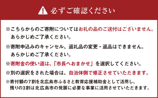 ※寄付額の7割を北広島市ふるさと教育応援補助金として活用し、残りの3割は北広島市の発展に必要な事業に活用させていただきます。
