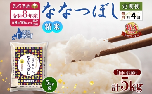 【令和8年産先行予約】北海道 定期便 4ヵ月連続4回 令和8年産 ななつぼし 5kg×1袋 特A 米 白米 ご飯 お米 ごはん 国産 ブランド米 おにぎり ふっくら 常温 お取り寄せ 産地直送 送料無料 月形 [№5783-0399]