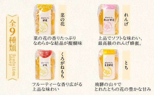 【国産蜂蜜】グラデーションhoney(9種類 各1本)