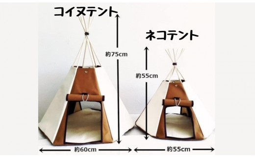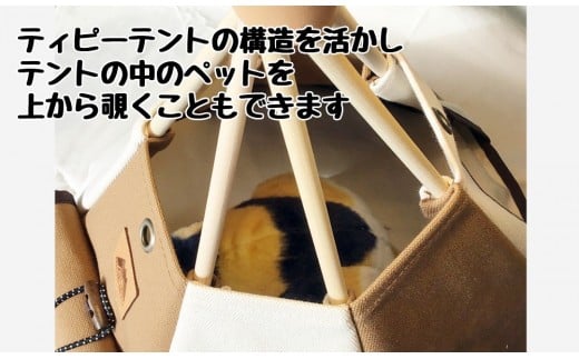 ・ティピーテントの構造を活かしテントの中のネコを上から覗くことができます。また、ネコの遊び道具をテント内に吊るすことも可能です。