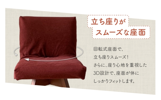 座面は回転式。背中から座面にかけて3D曲線で座りやすい設計。