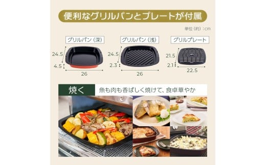 グリル料理、煮込み料理、焼き料理などお料理のバリエーションを広げるグリルパン付。