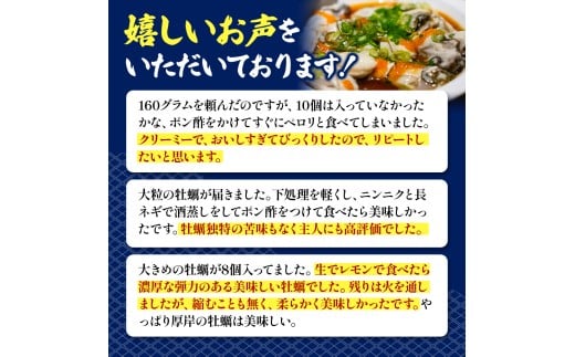 開封して口に頬張るだけ!手軽に食せる 厚岸産 牡蠣の剥き身!食べ応え十分160g