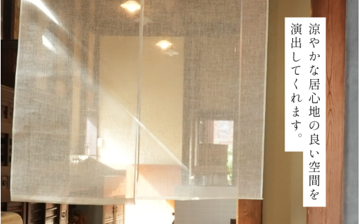巾45cmに織り上げた岡井麻布商店オリジナルの蚊帳生地を使用し、のれんに仕立てました。