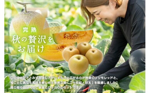 【先行予約】925.【ふるさと納税】【赤肉系メロン】プリモレッド (メロン) と旬の梨セット※離島への配送不可(北海道、沖縄本島は配送可能)