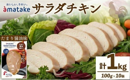 【年内発送】 サラダチキン たまり醤油味 100g × 10袋 計1kg 機能性表示食品 鶏肉 チキン 冷凍 ダイエット 健康 おかず サラダ 醤油 しょうゆ 大豆 小分け タンパク質 朝食 岩手県 大船渡市 アマタケ