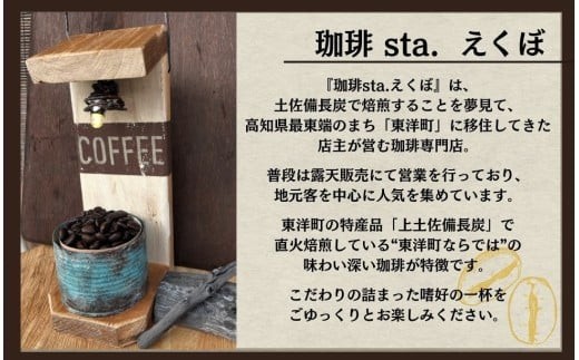 東洋町の特産品『上土佐備長炭』で直火焙煎したオリジナルコーヒー。
