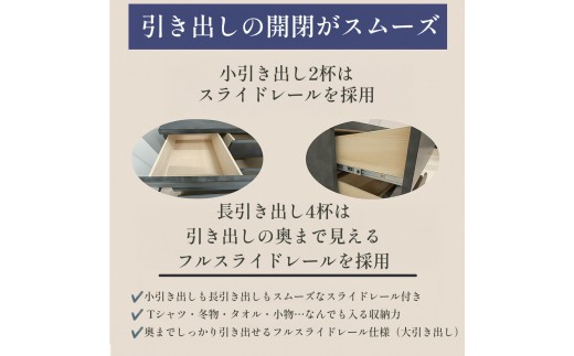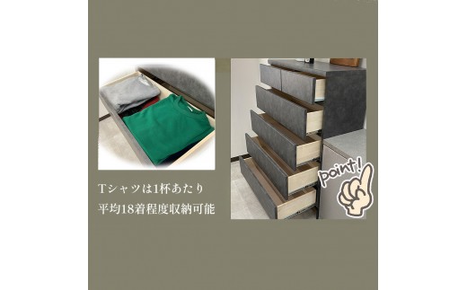 引き出し内寸も広く、Tシャツは1杯で最大18着、冬着で6着の収納が可能です。