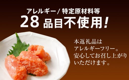 すけとうだらの卵(ロシア又は米国)、発酵調味料、昆布だし、食塩、風味調味料、唐辛子、たん白加水分解物、酵母エキス/甘味料(ソルビット)、調味料(アミノ酸等)、酸化防止剤(V.C)、ナイアシン、発色剤(亜硝酸Na)、酵素