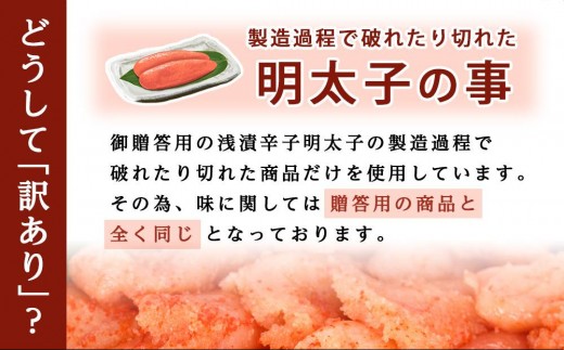製造過程で崩れたたらこを集めたバラコとなりますので、訳ありとしてご提供いたします。