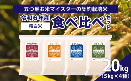 令和6年産【精白米】食べ比べ 20kgセット (ゆめぴりか5kg・ななつぼし5kg・ふっくりんこ5kg・おぼろづき5kg)【39103】
