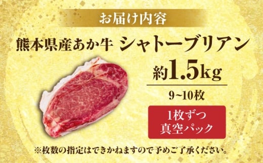 あか牛 ヒレ肉 希少部位 シャトーブリアン 約1.5kg (9~10枚) 牛肉 熊本県産 希少部位 ステーキ【合同会社 たべたせいか】 赤牛 和牛 牛 肉 ヒレ 希少 ヘルシー カット 冷凍 国産 熊本 [AYCB017]