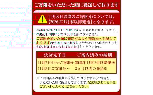 | 発送期日 | 入金確認後、3ヵ月以内の発送となります