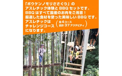【ボウケンノモリささぐり】アスレチック体験+BBQセット4名分 ZZ008