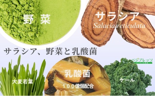 国内栽培の大麦若葉、ケールをベースに、サラシア純末を一杯で70mg配合しました。さらに植物性ナノ型乳酸菌を一杯に100億個配合。青汁、サラシア、乳酸菌をトリプルで摂取できます。