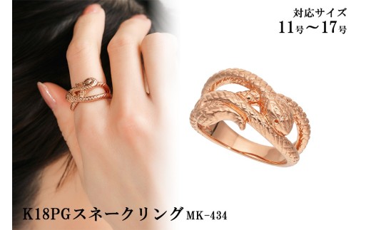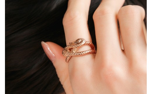 洗練された曲線美が魅力の、蛇をモチーフにしたK18ピンクゴールドリング。