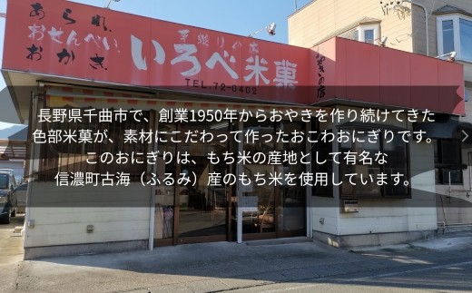 長野県千曲市で、創業1950年からおやきを作り続けてきた色部米菓が、素材にこだわって作ったおこわおにぎりです。