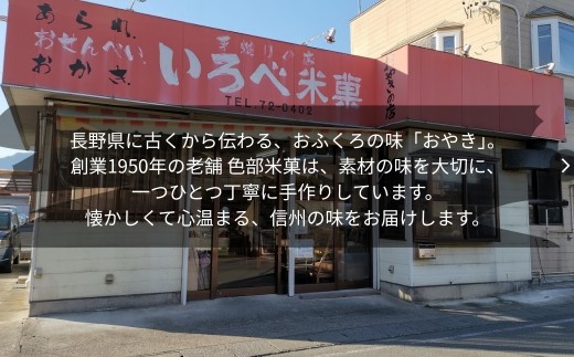 創業1950年の老舗 色部米菓は、素材の味を大切に、一つひとつ丁寧に手作りしています。