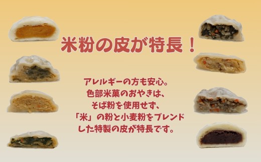 ・米粉の皮が特長!アレルギーの方も安心 色部米菓のおやきは、そば粉を使用せず、「米」の粉と小麦粉をブレンドした特製の皮が特長です。