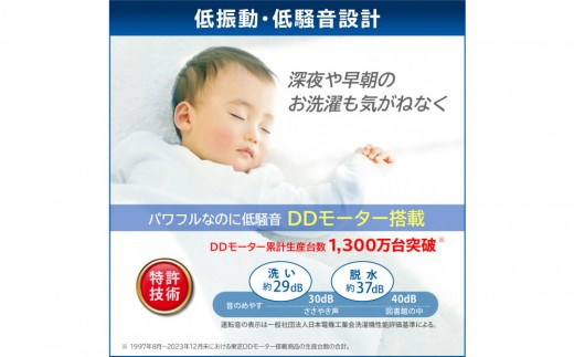 ●試験方法:JIS L1902に基づく菌液吸収法、当社にて処理した試験布を一般財団法人ボーケン品質評価機構にて評価 ●抗菌方法:銀イオンによる ●対象部分:洗濯槽内の衣類 ●試験結果:抗菌活性値2.0以上(菌の抑制率99%以上)