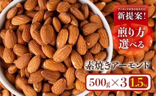 香ばし素焼きアーモンド 1.5kg(定番 3袋)無塩・直火焙煎・チャック付き保存袋