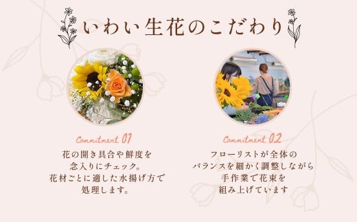 栃木県鹿沼市の花屋「いわい生花」が季節に合わせた新鮮なお花を厳選し年に4回お届けする定期便です。