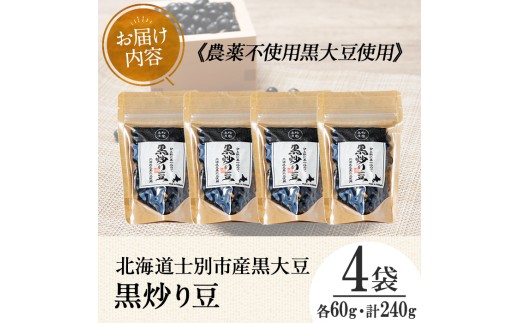 【A7129】《農薬不使用》 北海道士別市産 黒炒り豆 (60g×4袋・計240g) 国産 北海道産 道産 大豆 豆 【高松農園】
