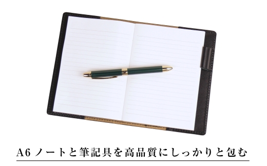 上質な本革の質感と無駄を省いたシンプルな構造が魅力のA6日本製ノートカバー。ビジネスでもプライベートでも使いやすく、手書きを大切にする方への誕生日や父の日、就職祝いなどの贈り物にもおすすめです。