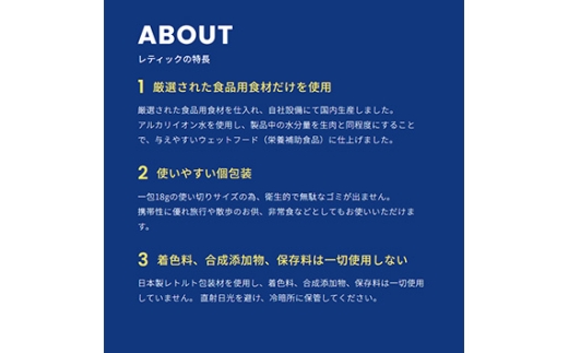 アルカリイオン水を使用し、製品中の水分量を生肉と同程度にすることで、与えやすいウェットフード(総合栄養食)に仕上げました。