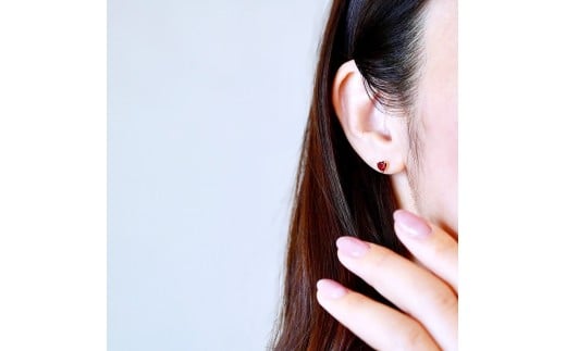 深みのあるレッドとハートシェイプが耳元で上品に煌めきを放ちます。