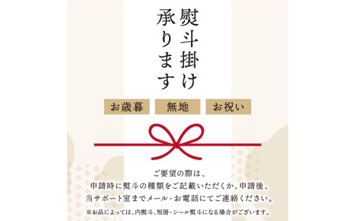 ※熨斗の名入れ(お名前・会社名の印字)や弔事用(志・御霊前・御供等)の熨斗は、原則としてお受けできません。