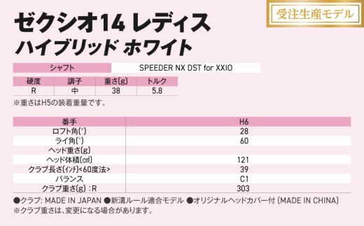 | 内容量 | 【受注生産】ゼクシオ 14 レディス ハイブリッド ホワイト SPEEDER NX DST for XXIO【H6/R】《2025年モデル》1点 ■シャフト