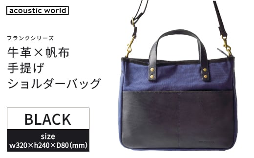牛革かぶせ×帆布 手提げショルダー ブラック 【12203-0377-1】