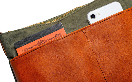 革とキャンバスが融合した大人のサコッシュ。タブレット収納も楽々、前面ポケットで出し入れ快適。