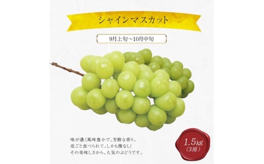 【2回目】ぶどう シャインマスカット 約1.5kg (3房) 9月上旬~10月中旬頃 冷蔵便でお届け予定