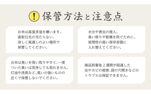 ●お米は臭いや湿気を吸いやすい食品です。特に臭いの強い食品・洗剤・灯油などのそばに置かないでください。