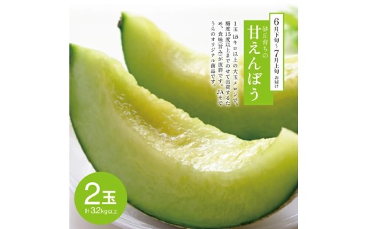 「砂丘育ちの甘えんぼう」は1玉 1.6kg以上の大玉青肉メロンで、糖度15度以上までのせて出荷するため、食味(旨み)が抜群です。JAそでうらのオリジナル商品で、数多くいる生産者の中でも上級者が栽培したメロンを厳選して2玉お届けいたします。