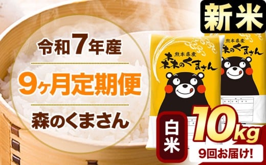 【9ヶ月定期便】新米 令和7年産 白米 森のくまさん 10kg 《申込月の翌月から出荷開始》 熊本県産 精米 米 こめ コメ お米 kome