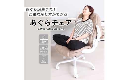 あぐらもかける広々座面が特徴のオフィスチェア「レヴェリー」。あぐらや片足立てなど、自分だけの楽な姿勢でデスクワークをしたい方におすすめです。